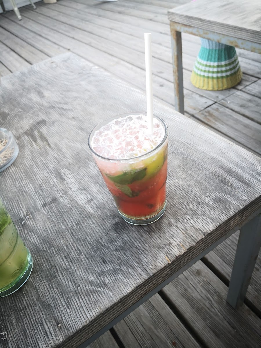 As you step into the cafe, a sense of warmth and friendliness envelops you—an inviting atmosphere complemented by the soft sounds of music that set the stage for a laid-back dining experience. With comfortable blue couches positioned for optimal sea views, you can unwind as you sip on expertly crafted cocktails and savor the delicious fare.